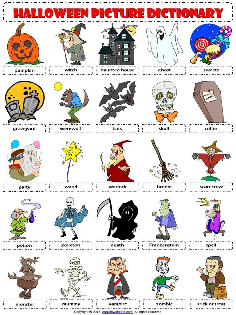 Halloween Esl Vocabulary Picture Dictionary Worksheet For Kids PDF