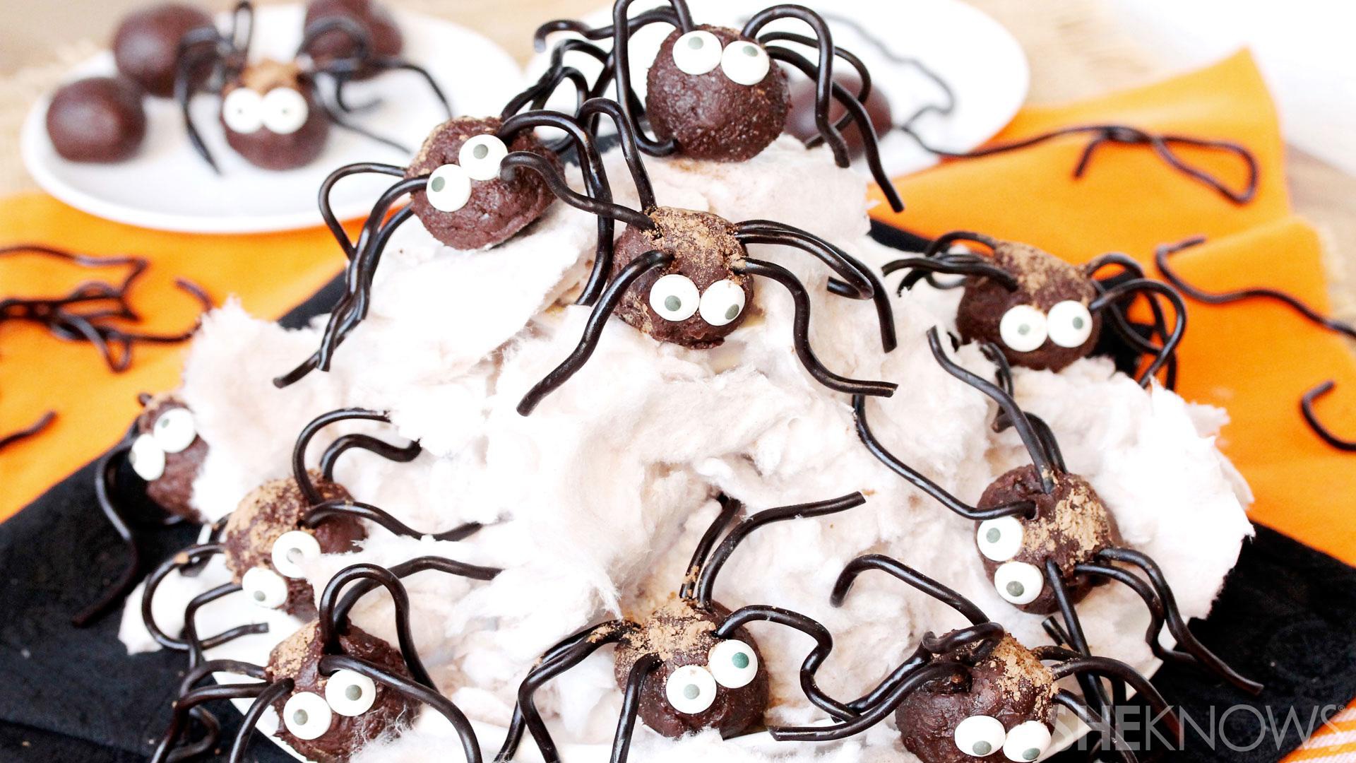 Creepy chocolate spiders in an edible web make an adorable Halloween