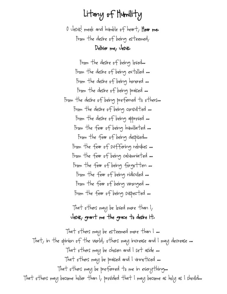 Web about the litany of humility. Pray the beautiful litany of humility to overcome pride and selfishness. Web litany of humility o jesus, meek and humble of heart, hear me. From the desire of being esteemed,. Web schau dir unsere auswahl an litany of humility printable an, um die tollsten einzigartigen oder spezialgefertigten.