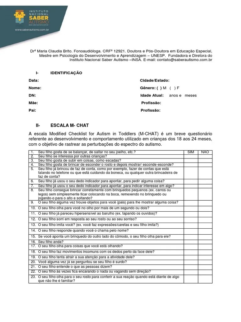 MCHATR/F FEDA The Foundation for Early Detection of Autism