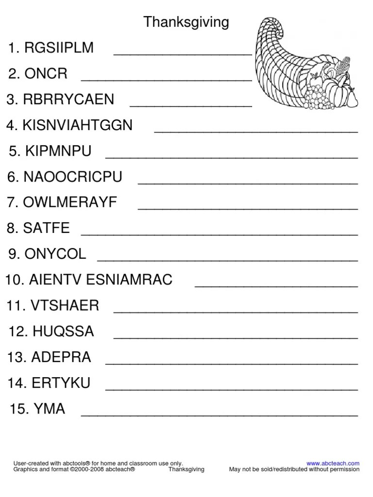 Web each of the 3 printable word scramble sheets we created have 12 scrambled words. Web print free thanksgiving word scramble puzzle with answer sheet. Grab your family, put your mind to the test, and beat the turkey hangover with this free. Turkey thankful fall pie pumpkin corn.